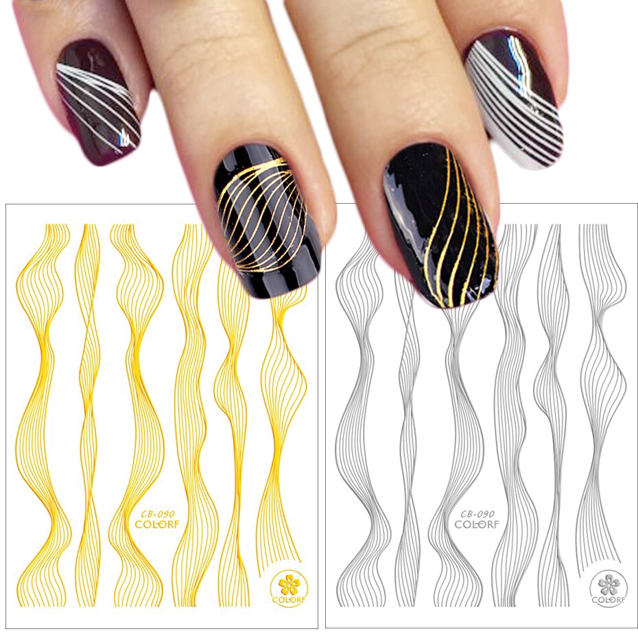 1p Gold Silver Sliders For 3d Nail Stickers Curved Lines Stripe Tape Design Nails Art Manicure Wraps Shopee Indonesia