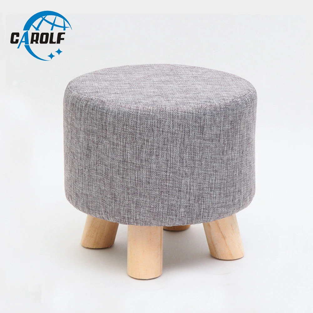 Nordic Living Room Luxury Upholstered Shoe Round Pouffe Stool Wooden Pattern Soft Fabric Ottoman With 4 No Skid Legs Stools Ottomans Aliexpress