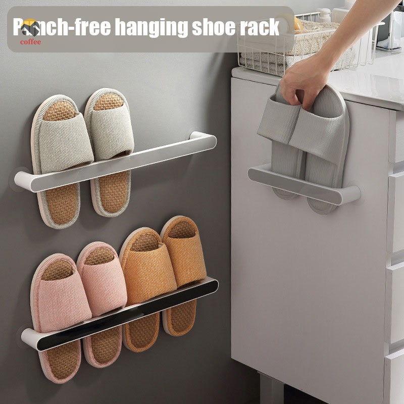 Ce Bathroom Shoe Rack Slippers Rack Wall Mounted Punch Free Rack Slippers Organizer Self Adhesive Storage Towel Racks Shopee Indonesia