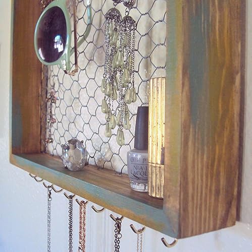 Amazon Com Chicken Wire Frame Jewelry Organizer Wall Photo Memo Hanger Shabby Bohemian Display Board Wood Boho Picture Holder Dorm Decor Handmade