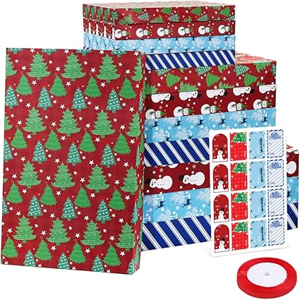 Amazon Com Cabilock 12 Piece 4 Pattern 3 Size Holiday Gift Wrapping Boxes Large Christmas Boxes With Lids Robe Boxes Shirt Boxes Perfect Christmas Wrapping Boxes With Ribbons And Stickers For Wrapping Christmas
