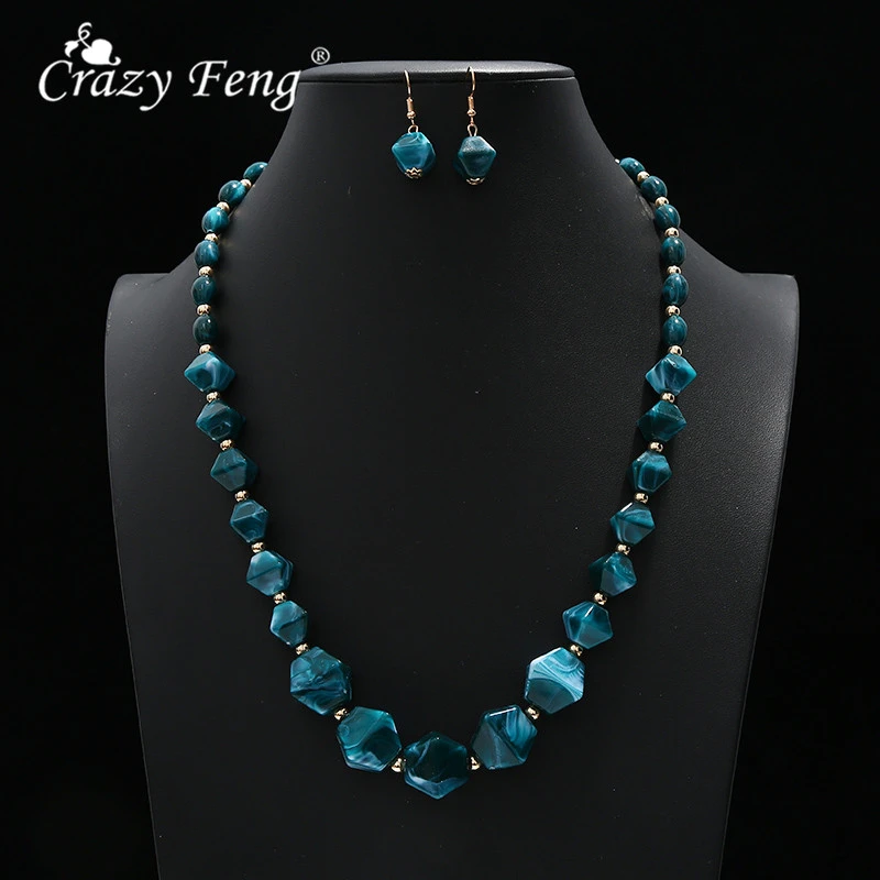 Vintage Costume Jewelry Sets For Women Resin Oval Stone Beaded Necklaces Long Drop Earrings Set 2021 Fashion Jewelry Ne Ea Jewelry Sets Aliexpress