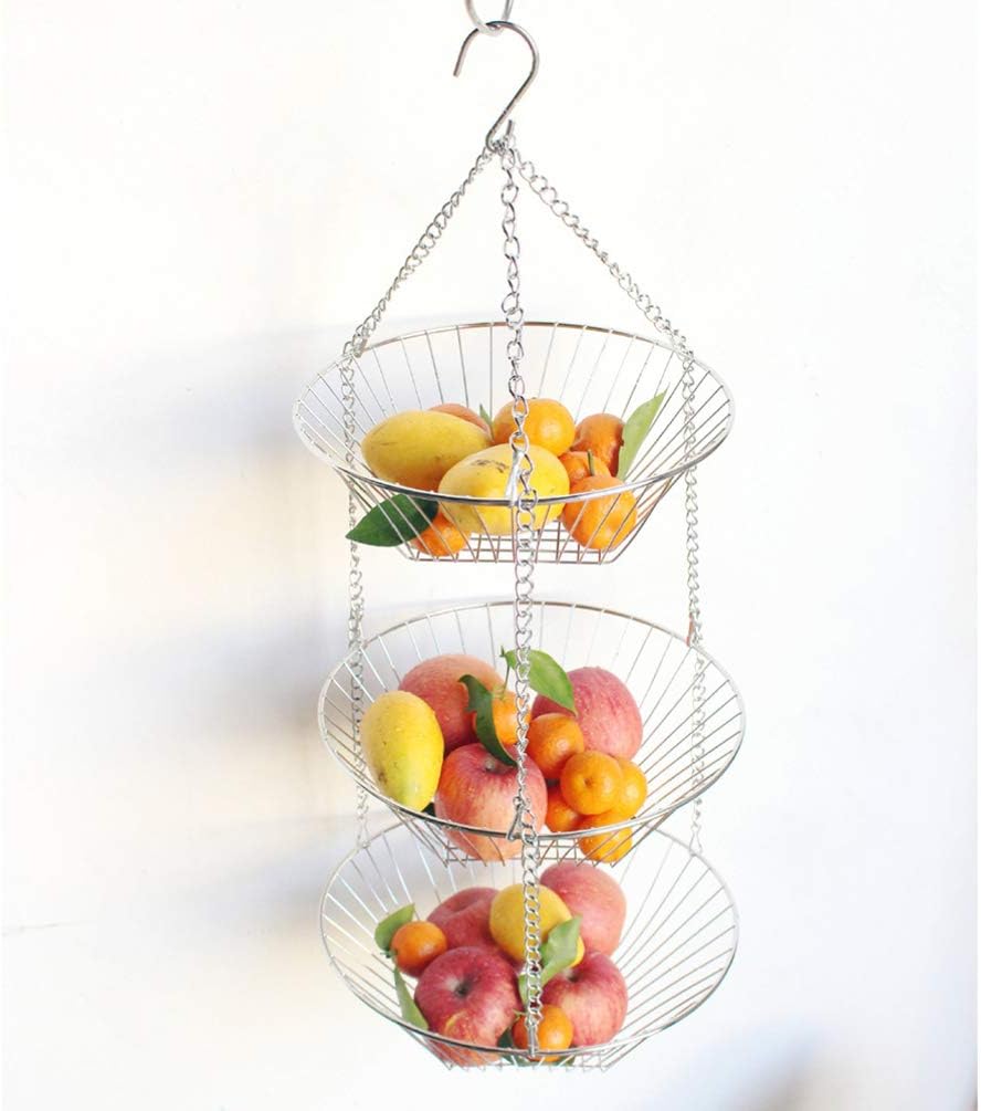 Tier Hanging Woven Wire Metal Basket Fruit Vegetable Kitchen New Easy to hang and even easier to maintain those hanging fruit baskets can be a nice idea for every kitchen. Product Title Hanging Fruit Basket Stainless Steel 3-Layer Baskets. Ships free orders over 39.