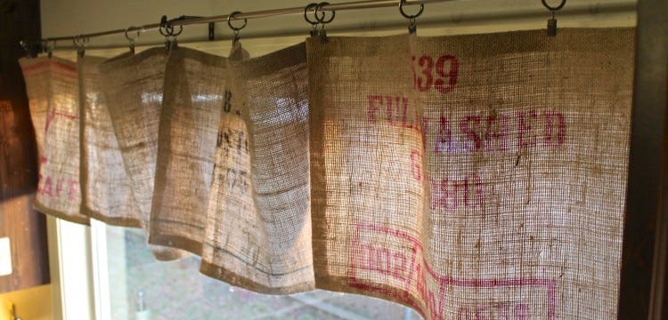 Do you see our little red DIY planter chair on the other side of the glass. Mar 26 2017 - Explore Dawn Silsbys board Burlap Curtains No Sew on Pinterest. The seamed frayed edges went on the top along the top of the window casing and the bottom.