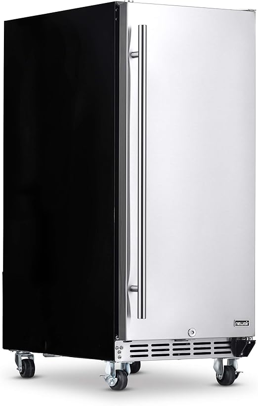 Amazon Com Newair 15 Built In 90 Can Nof090ss00 Outdoor Beverage Fridge In Weatherproof Stainless Steel With Auto Closing Door And Easy Glide Casters Appliances