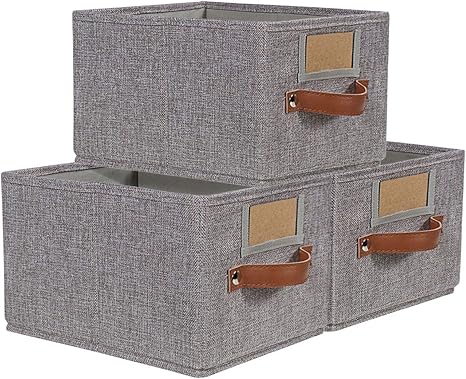 Amazon Com Foldable Storage Baskets For Shelves Set Of 3 Fabric Storage Bins With Labels Decorative Cloth Organizer Storage Boxes Rectangle Closet Bedroom Drawers Organizers For Home Office 11 4x8 7x6 7