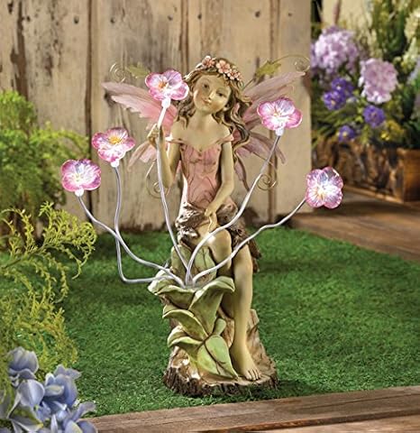 Amazon Com Fairy Garden Solar Statues Concrete Sculptures Outdoor Decor Resin Disney Angel Lawn Yard Patio Ornament Kitchen Dining