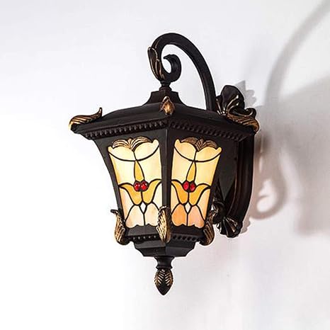 Amazon Com Tiffany Style Outdoor Wall Lights Stained Glass Corridor Wall Lamp Vintage Outdoor Balcony Aisle Hallway Wall Sconce Lighting E27 110 240v 182023cm Home Kitchen