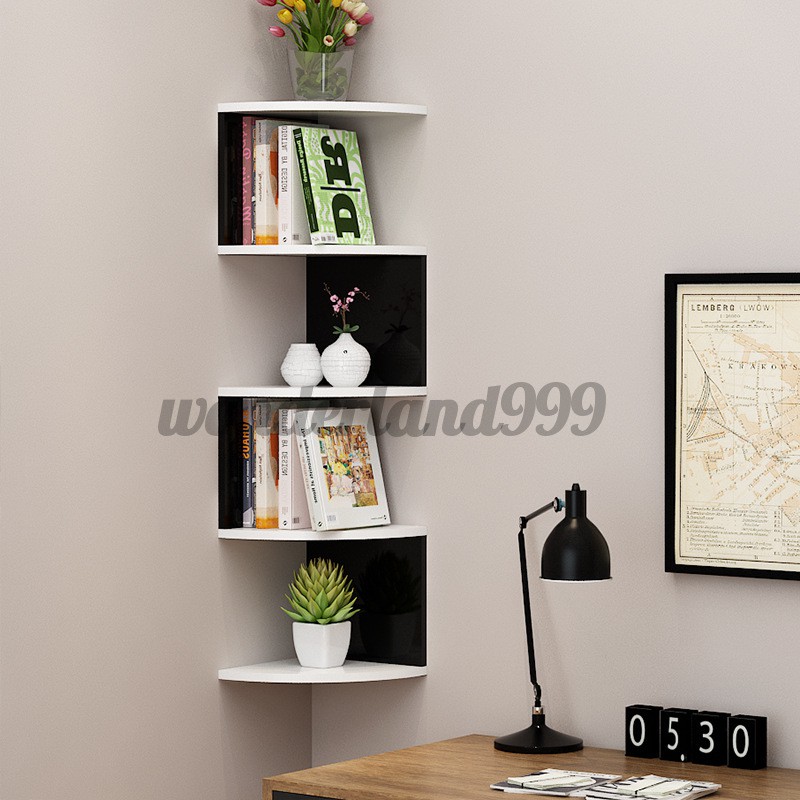 5 Tier Wooden Corner Wall Mount Shelf Display Shelves Floating Storage Rack Shopee Indonesia