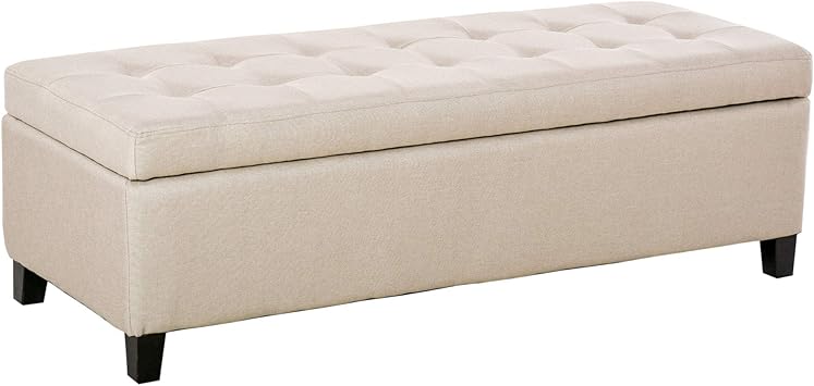 Amazon Com Homcom 51 Large Tufted Linen Fabric Ottoman Storage Bench With Soft Close Top Beige Furniture Decor