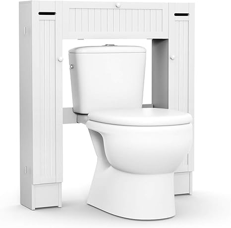Amazon Com Giantex Over The Toilet Rack Bathroom Shelf Storage Cabinet Wooden Drop Door Freestanding Spacesaver Improvements White Kitchen Dining