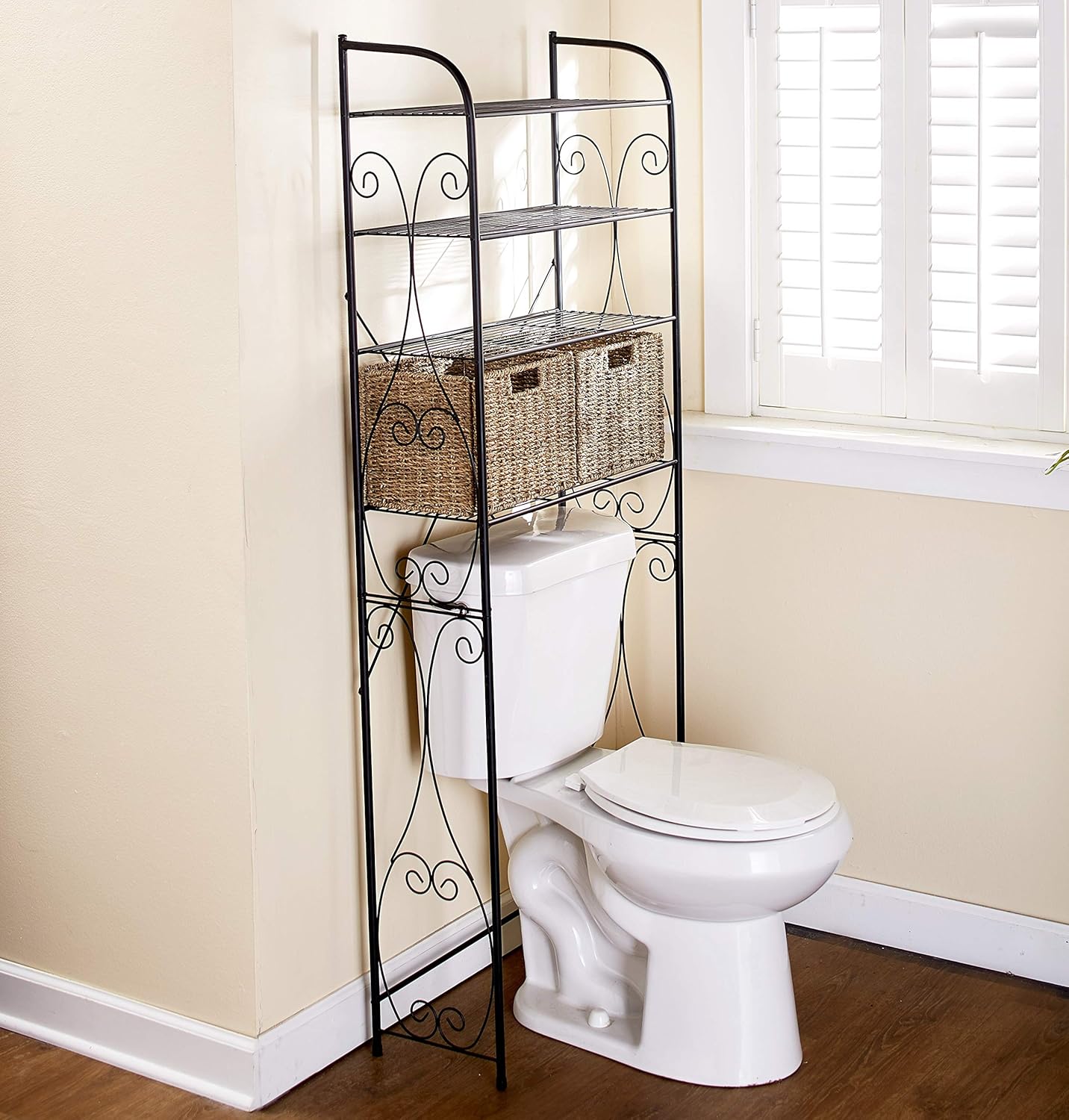 Space savers and closet organizers made of wicker wood metal or contemporary plastic add beautiful textures and colors to small bathrooms creating pleasant and comfortable atmosphere. I already had the basket with toilet paper in it and it still works perfectly sitting on the lowest shelf.