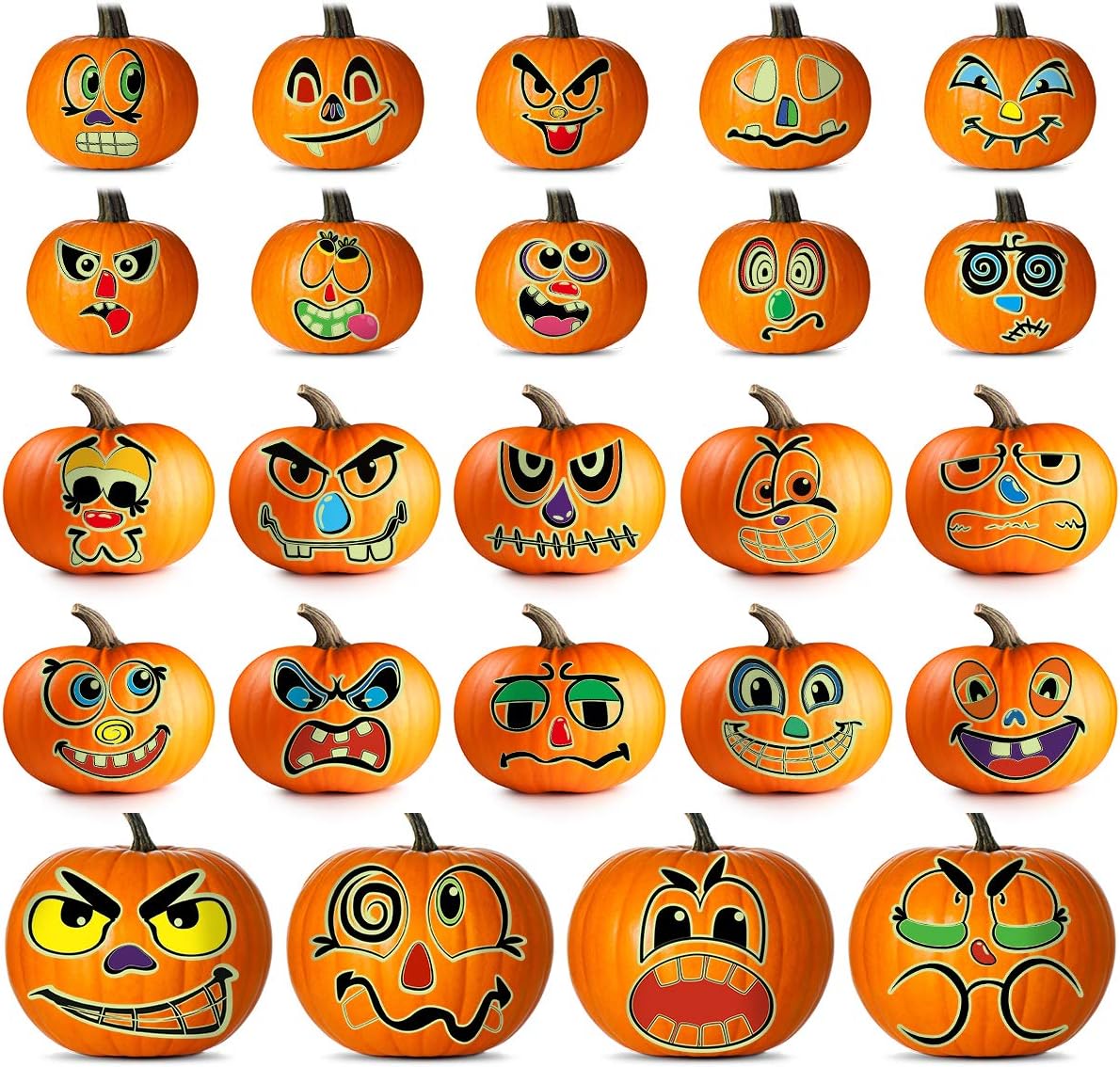 Amazon Com Glowing Pumpkin Decorating Kits Stickers Halloween Pumpkin Decorations Crafts For Kids Halloween Wall Decorations Stickers For Autumn Halloween Party Favors 24 Sets Kitchen Dining
